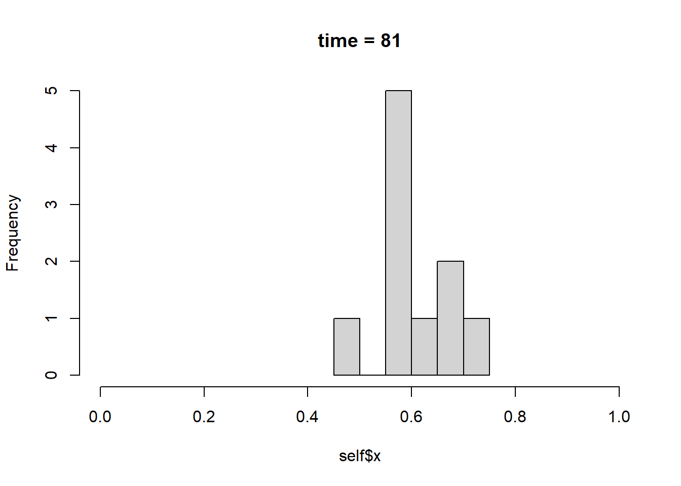 hist(self$x, main = paste0("time = ", self$time), xlim = c(0, 1))
